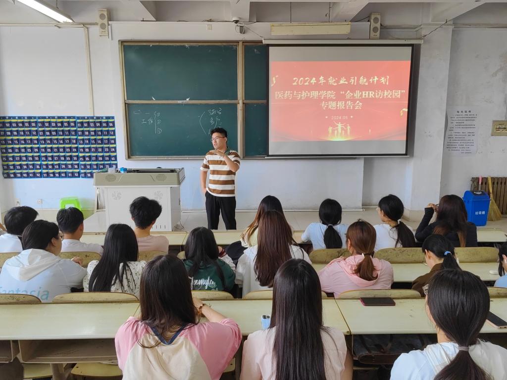 为切实做好2024届毕业生就业工作,搭建毕业生与用人单位交流平台,引导同学们科学规划未来的职业发展道路,医药与护理学院于5月23日在体育楼301举办“企业HR访校园”专题报告会。报告优秀校友邀请赛诺菲中国投资有限公司地区经理王磊和江苏恒瑞医药股份有限公司临床监察员韩启奎为在校生开展职业规划指导。