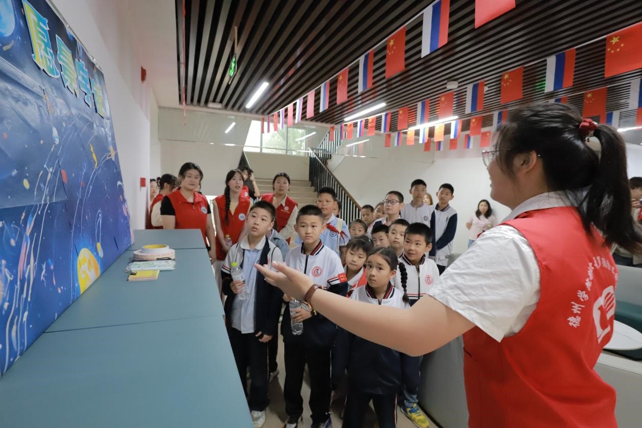 活动中孩子们在老师和志愿者带领下参观了智慧教室,去实验室里了解了科技前沿,品尝了校园美食,在图书馆中被浩瀚藏书所震撼,在田径场上自在“翱翔”,自由奔跑。这种体验式的参观学习深深地激发了同学们浓厚的兴趣和求知欲。