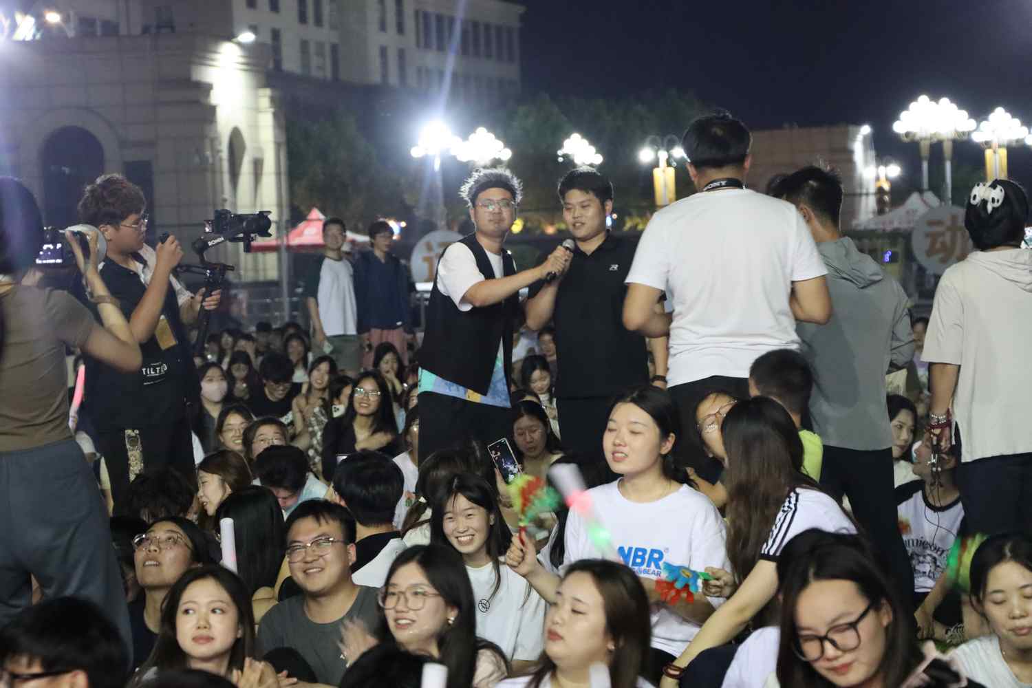 主持人采用现场猜歌送小礼物的方式去点燃大家的激情,大家热情高涨,很多同学积极参与,带来了不少充满热情的演唱,不仅如此,在下半场的音乐会过程中,“双子星”乐队还带来了《鲜花》、原创歌曲《花火》。台上演唱奔放热烈、台下欢呼此起彼伏,歌会现场热情高涨、气氛热烈。随后,主持人随机邀请现场的同学上台演唱,大家热情满满,带来了令人眼前一亮的歌曲。