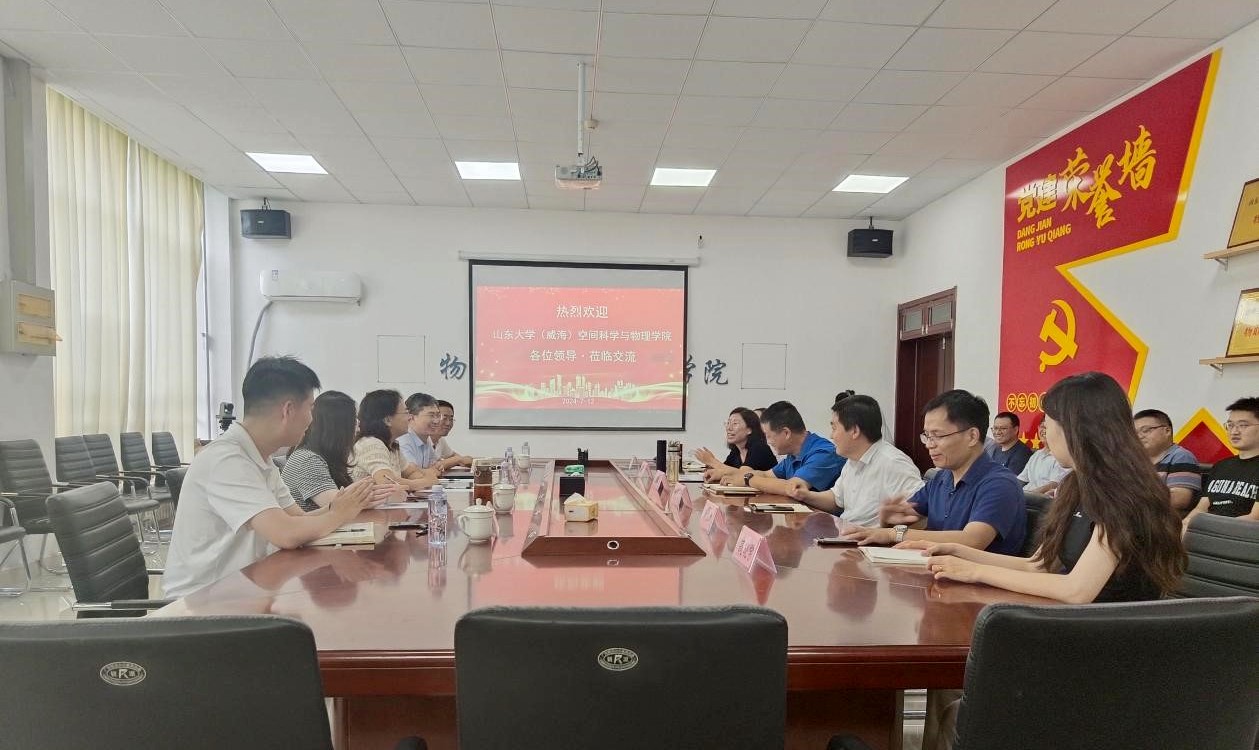 7月12日下午,山东大学(威海)空间科学与物理学院一行来物理与电子信息学院开展学院交流及合作探讨。本次访问由山东大学空间科学与物理学院党委书记迟涛和副院长胡绍明带队,旨在加强两所院校之间的联系,并探望已在beat365官方网站工作的山东大学博士毕业生。学校科技处、物电学院主要负责人和物电学院凝聚态物理与天体物理相关博士教师参与了此次交流会。