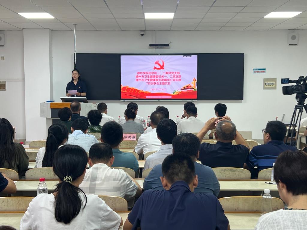 为进一步厚植爱国情怀,践行文明新风,弘扬科学精神,丰富主题党日活动内容,推进党建与业务深入融合,7月12日下午,药学院、健康医学院联合德州市卫生健康委共同召开主题党日暨社会主义核心价值观教育活动,药学院、健康医学院教师党支部全体党员、学生党支部党员代表参加。