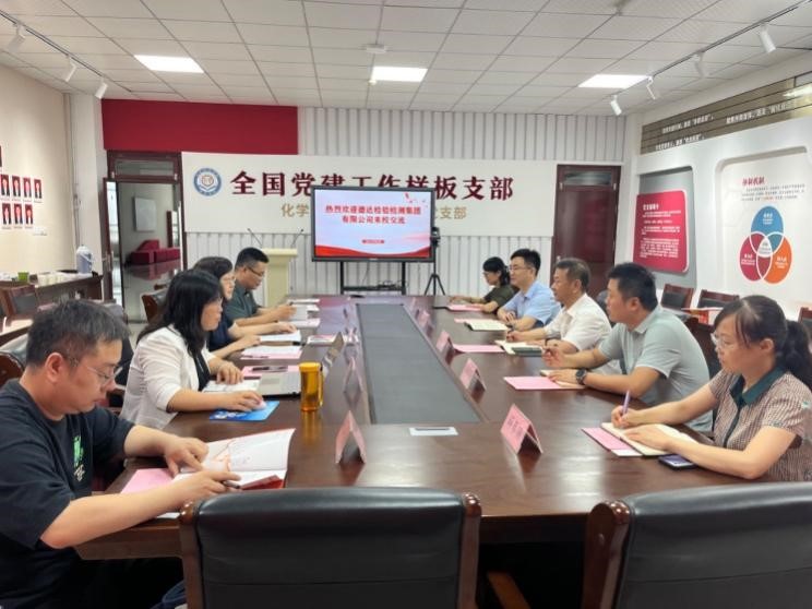 7月26日,德州德达检验检测集团有限公司常务副总刘涛及公司技术负责人等一行5人到化学化工学院院对接交流,双方在启智楼0518会议进行了座谈交流,化学化工学院负责人及相关教师参加了交流活动。