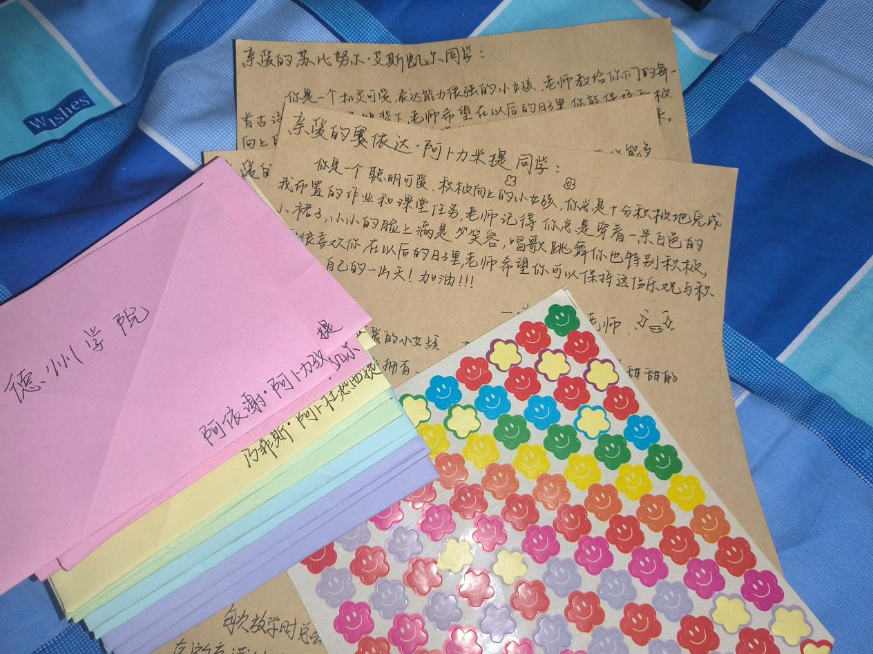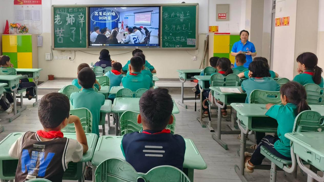 惜别时刻,孩子们的每一幅图画、每一封手写信、每一次深情的拥抱,都凝聚着依依不舍的情感和感恩之心。英吉沙县第五小学感谢支教队员的广播响彻了所有教学楼,教室里播放着beat365官方网站青媒工作室专门为五小学生制作的纪录片《让爱飞跃万水千山》,孩子们看到片子里的自己都兴奋不已,先是开心,后是抽泣,连续看了几遍才肯罢休。