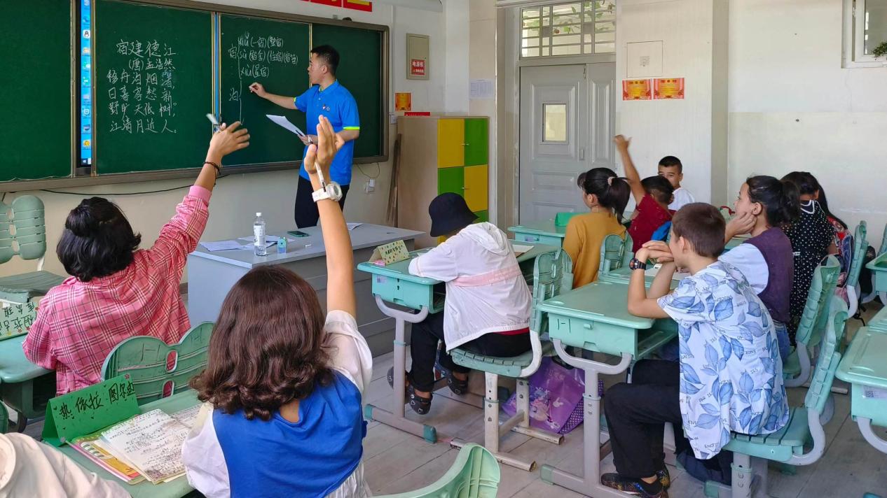在喀什英吉沙县第五小学服务期间,支教队员们秉承“德智体美劳全面发展”的教育理念,坚持做到一日一总结、二日一磨课。针对小学生的特点,精心设计一系列特色课程:通过书法临摹、吟诵古诗培养学生的汉语思维,推广普及普通话;通过生物作品的手工制作,提升小学生审美能力,认识人与自然的关系;通过显微镜观察生物微观世界,培养小学生科学探究兴趣;通过师生一起学唱《把未来点亮》、一起踢足球、老鹰捉小鸡等文体活动,增进师生,生生之间的感情,培养学生团结协作的精神;通过查漏补缺的方式辅导小学生课业,帮助学生提升发现问题、分析问题和解决问题的能力。同时,结合当地资源深化劳动教育,带着学生们走进农场,亲身体验瓜果采摘的乐趣,参与校园卫生的打扫工作,有效培养孩子们的动手能力和责任感。