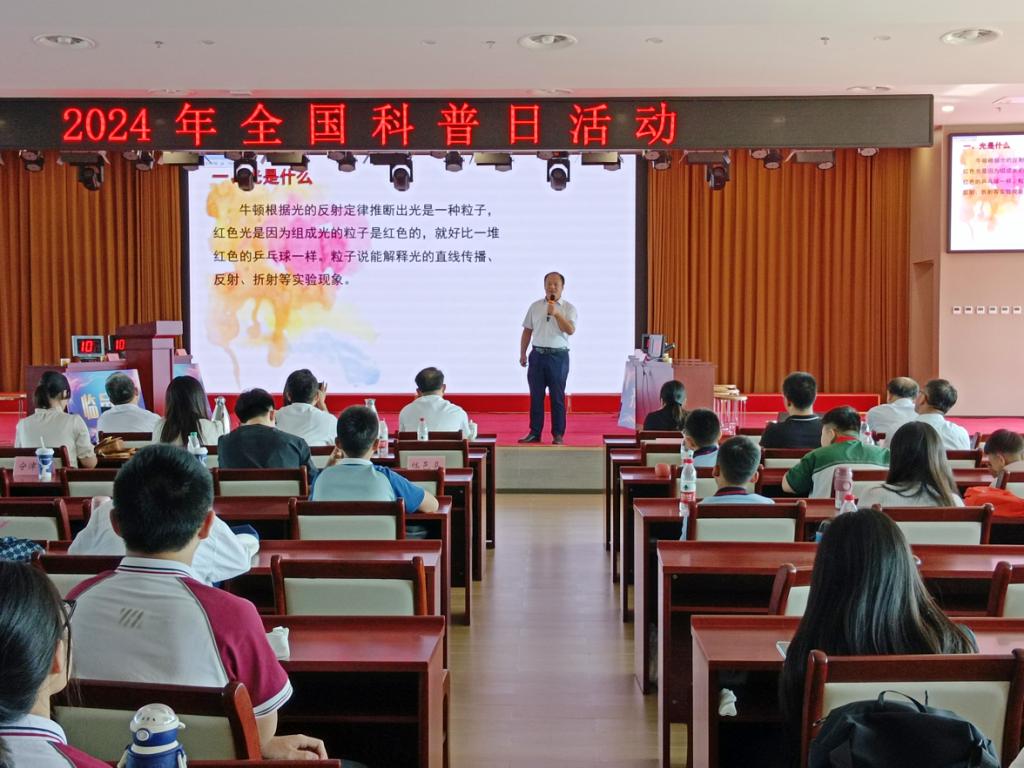 刘汉平老师作了题为《神奇的光》的科普报告。报告通过大量图片和视频,从什么是光、光的现象及光的应用三个方面,向学生深入浅出分析了身边的光学现象和光学规律,介绍了光在测量、传感、通信、军事、核聚变等方面的应用,展示了光的神奇魅力。报告内容图文并茂,同学们积极回应,现场气氛火热。