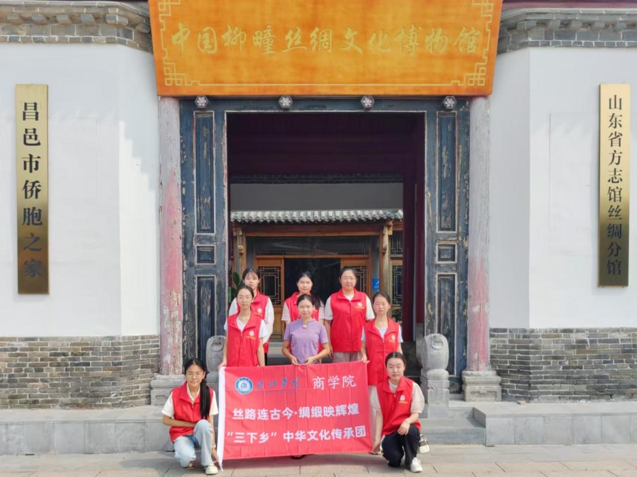 8月12日至14日,商学院“丝路连古今,绸缎映辉煌“中华文化传承队前往山东省潍坊市昌邑市柳疃镇,开展丝绸文化传承活动。通过社交媒体、口头宣讲等方式,拓宽丝绸文化传播渠道和表现形式,让更多的人能够近距离感受丝绸文化的独特魅力。