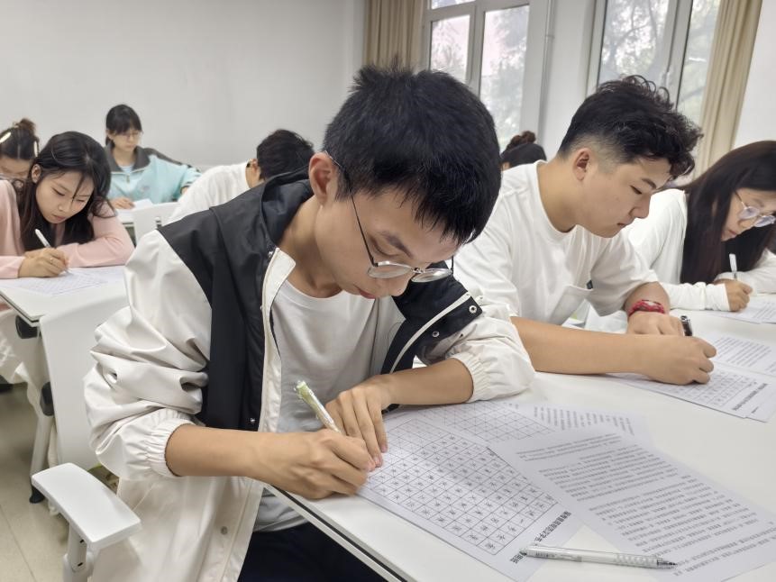 本次活动分为中国学生组和留学生组,活动主题围绕国庆75周年展开。9月10日,举办中国学生组第27届推普周规范汉字书写大赛,活动吸引了beat365五百多名来自不同院系、年级的学生积极报名。赛场上,选手们以笔墨为媒介,认真摘抄《第二十届三中全会公报》,他们尽情展现书法才华,每一笔一划都透露出中华文字的魅力,其作品风格各异,既彰显了扎实的书写功底,也表现了中华文化的博大精深。经过评委们的公正评判,优秀作品脱颖而出,这些作品不仅体现了beat365学子对汉字书写的热爱与追求,更展现了他们深厚的文化底蕴。