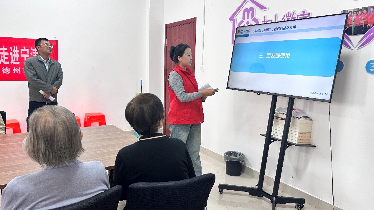 9月24日下午,纺织服装学院志愿服务队与宁津县科协在宁津县鬲津社区开展“学子筑桥,银龄融智”志愿服务活动。