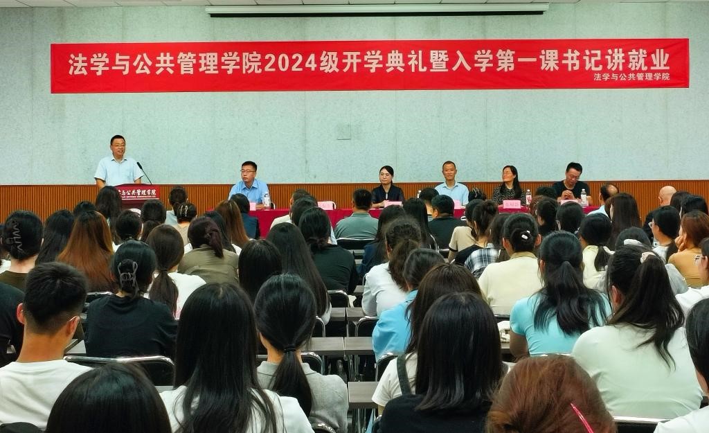 9月2日,法学与公共管理学院2024级新生开学典礼在博文楼528教室举行。学院党政班子成员、全体教师及158名2024级本科生参加会议。