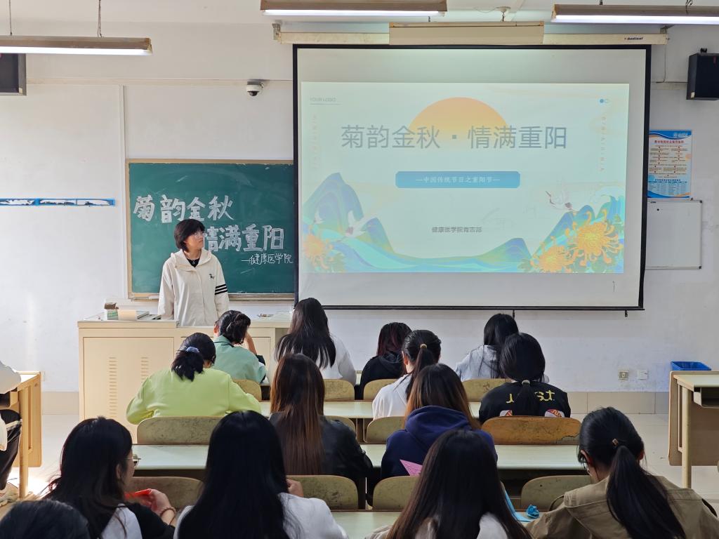 健康医学院举办“菊韵金秋,情满重阳“主题活动,追溯重阳节的由来,了解重阳节的演变及其现实意义;通过讲述重阳节的传统神话故事、节日习俗,一起诵读有关重阳节的传统诗词作品等,共同品味中华民族传统文化的博大精深。最后,折纸寄语,感谢家中长辈对自己的照顾和教导,感念养育之恩,抒发感恩之情。
