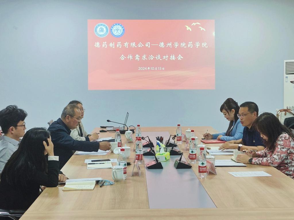10月15日,药学院在启智楼529会议室联合市、区两级人社局、德药制药举办人才需求对接交流会。德州市人社局人才开发科主任王少飞、德州天衢新区社管部人社处主任石红红、德州德药制药有限公司人资副总经理陈妍松参加活动,药学院领导班子及全体教师参加。
