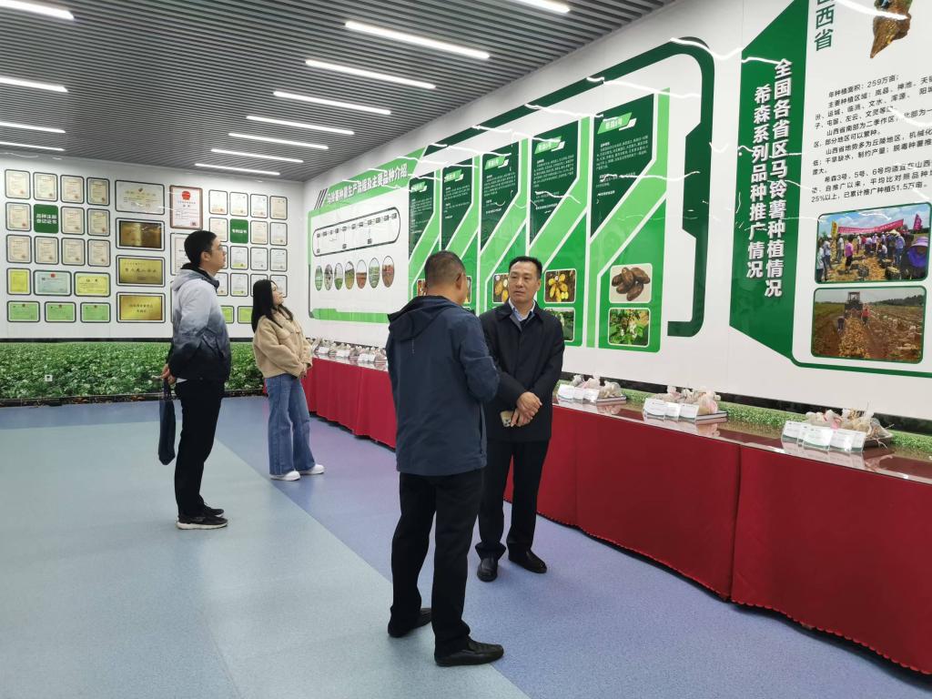 10月30日,生物物理研究院山东省生物物理重点实验室马铃薯遗传发育与品质改良团队一行4人赴山东乐陵希森马铃薯产业集团有限公司,开展马铃薯产业调研工作,并与国家马铃薯工程技术中心负责人胡柏耿,对马铃薯产业相关问题进行深入交流探讨。