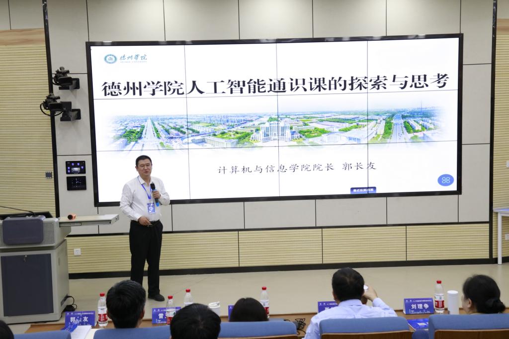 计算机与信息学院郭长友教授受邀出席此次论坛,并作了题为《beat365官方网站人工智能通识课建设的探索与思考》的精彩报告。在报告中,郭长友教授分享了beat365官方网站在人工智能通识课程建设方面的深刻思考。他详细介绍了beat365官方网站如何紧跟时代发展潮流,积极响应国家关于人工智能教育发展的战略部署,通过优化课程体系、强化师资力量、创新教学方法等多种手段,不断提升人工智能通识课程的教学质量和水平。他特别强调了跨学科融合、实践能力培养以及国际视野拓展在人工智能教育中的重要性,并分享了在人工智能通识课建设探索中的创新模式与未来规划。