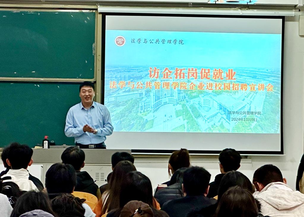 法学与公共管理学院于博文楼431教室举办“同心聚力共话就业与未来”企业进校园招聘宣讲会暨企业HR进校园就业指导活动。本次活动邀请北京市盈科(德州)律师事务所和山东载熙律师事务所两家律所的有关负责人为同学们开展宣讲及就业指导,法学与公共管理学院相关负责人参加了活动。北京市盈科(德州)律师事务所有关负责人向同学们详细介绍了律所的发展历程、管理体制和招聘需求。活动中,在盈科律师事务所就职的优秀校友还针对毕业生广泛关注的笔试经验、面试技巧等求职问题进行了解答和经验分享。山东载熙律师事务所有关负责人从律所的业务领域、团队建设、企业文化等方面进行了详细介绍,欢迎毕业生加入。在问答交流环节,律所负责人分别就用人标准、人才培养与职业规划等问题进行了解答,帮助同学们深刻认识到法学及管理行业的就业趋势,树立就业信心,明确适合自己的发展方向。