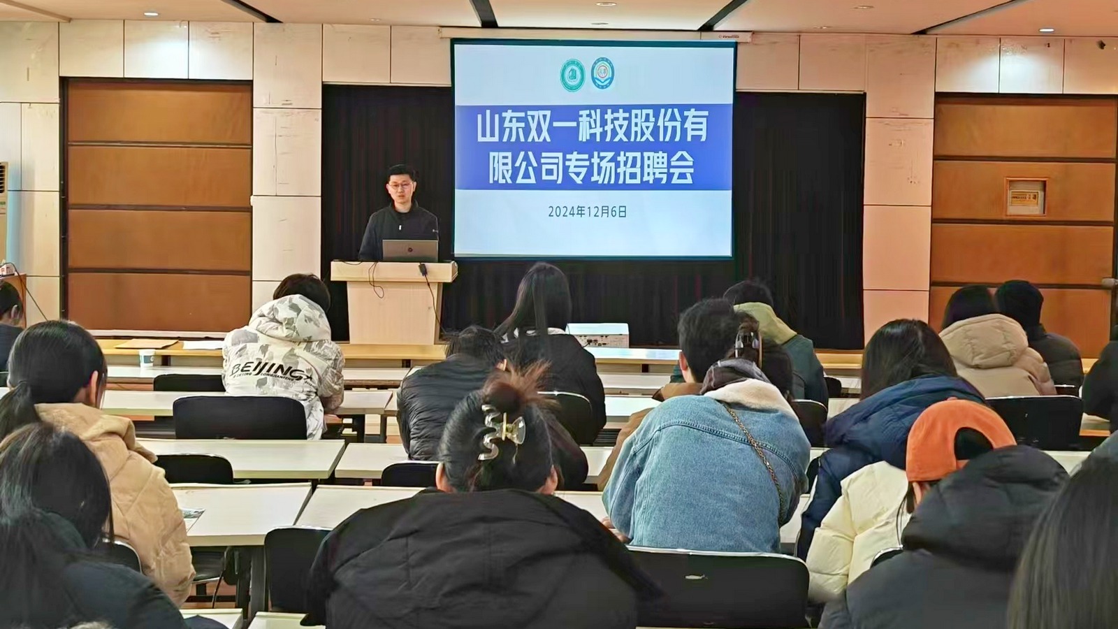 为搭建优质就业平台,促进校企精准对接,进一步推动毕业生高质量就业,12月6日,化学化工学院于求实楼215教室开展山东双一科技股份有限公司招聘宣讲会,2025届毕业生参加。