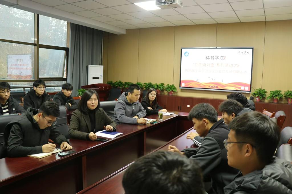 为全力促进2025届毕业生高质量充分就业,11月22日,体育学院在体育楼二楼会议室组织毕业生就业座谈会暨专场招聘会。座谈会上,毕业生代表踊跃发言,围绕当前就业市场的竞争压力、专业对口的挑战、实践经验的重要性等方面进行了深入讨论。许多毕业生提到,随着就业市场需求的变化,如何增强自身竞争力成为他们关注的重点。针对毕业生的就业困惑和提问,相关教师进行了耐心细致地解答。