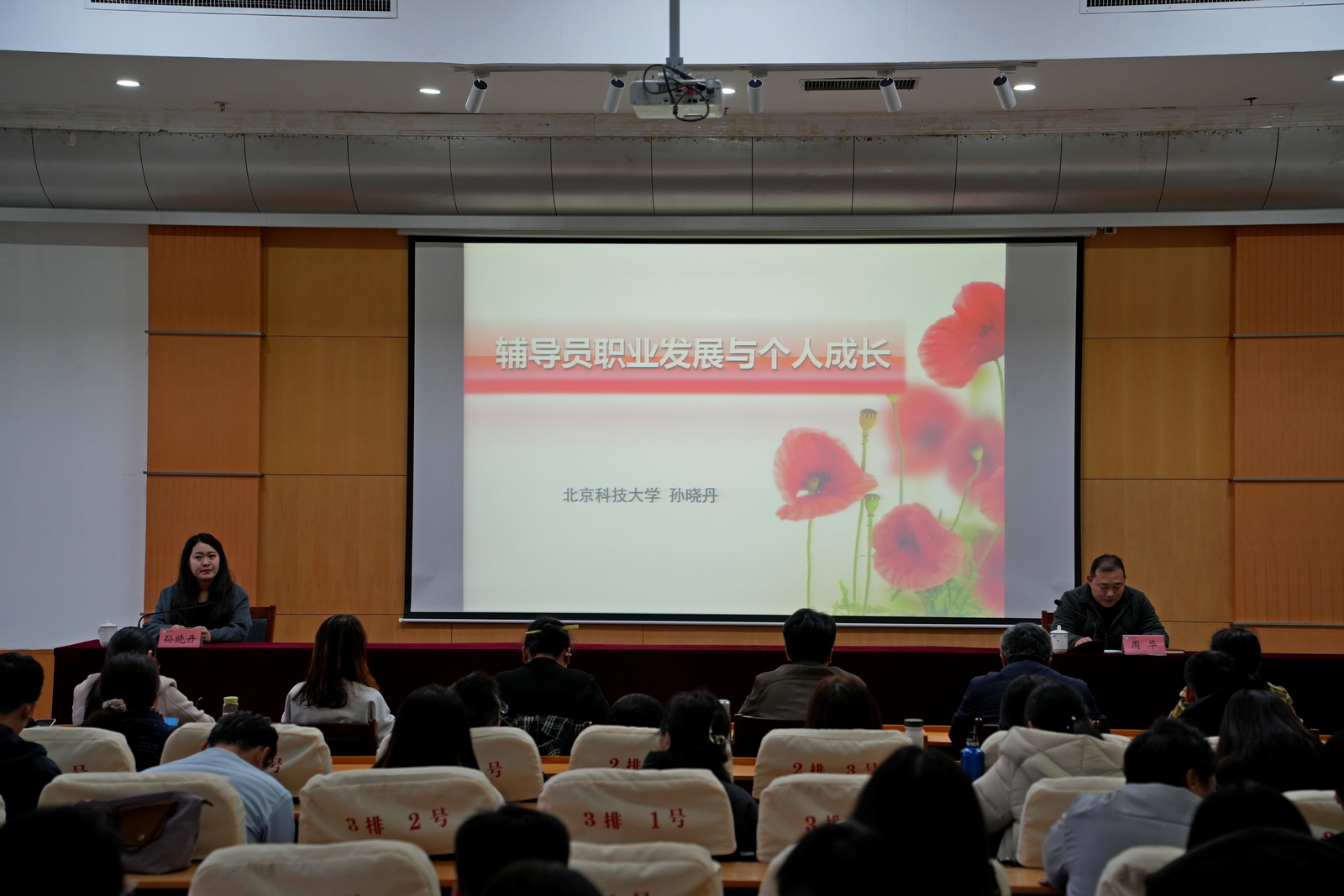 为进一步提升学工人员履职能力,11月23日下午,beat365邀请2022年全国“最美高校辅导员”荣誉称号获得者、北京科技大学孙晓丹老师作辅导员职业发展专题报告会。