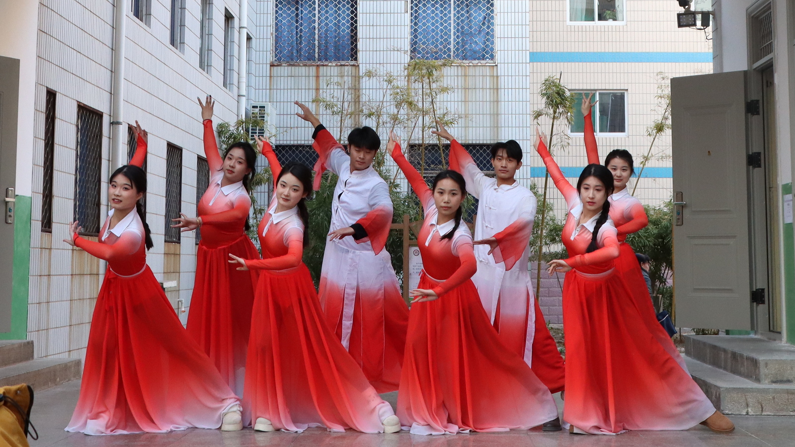 走出舞蹈房,校园的每个角落都变成了学生们的舞台。一场精心策划的“快闪”活动惊喜上演,灵动的舞姿吸引了众多师生驻足观看。熟悉的校园场景与活力四射的舞蹈完美融合,使得校园文化氛围越发浓厚