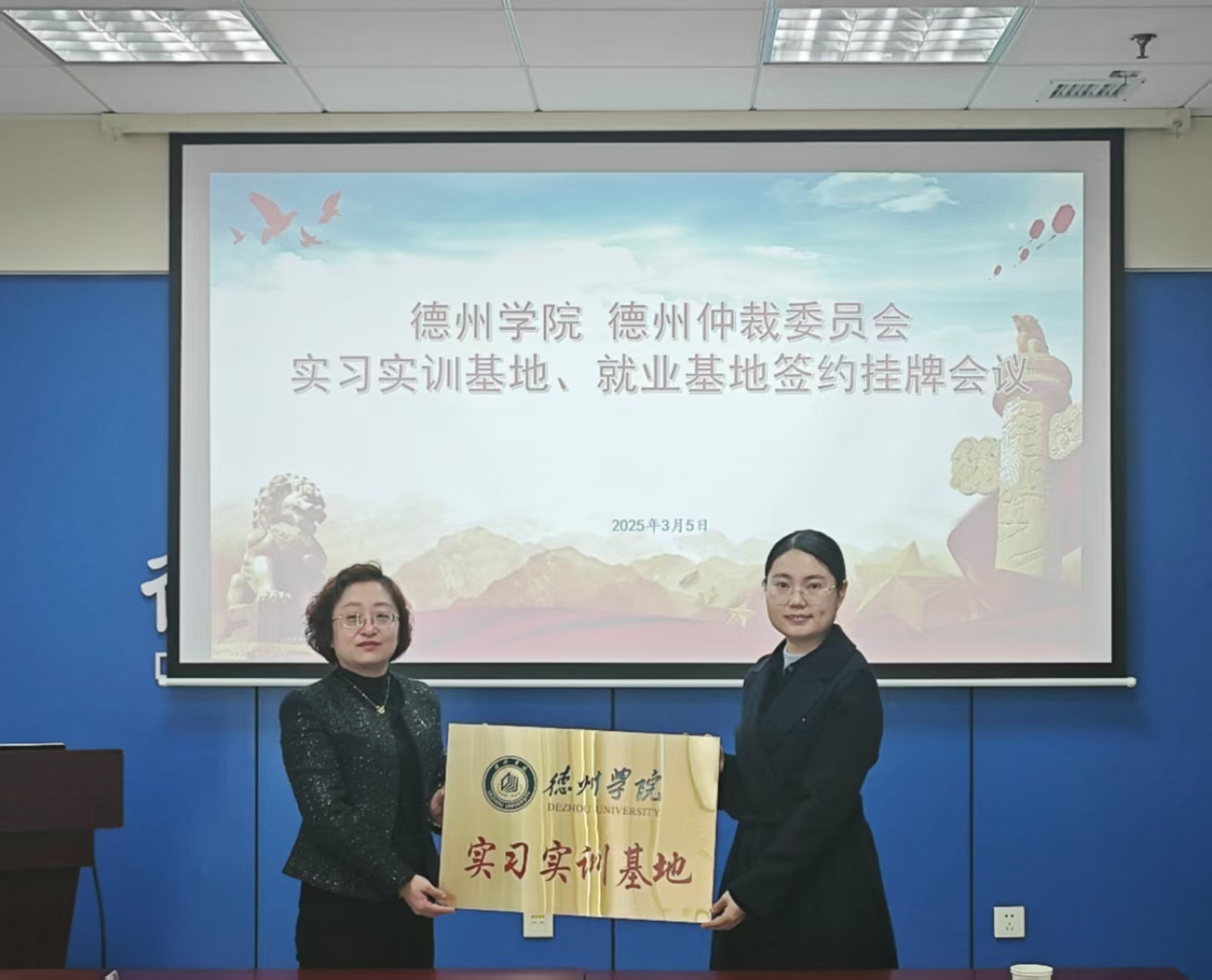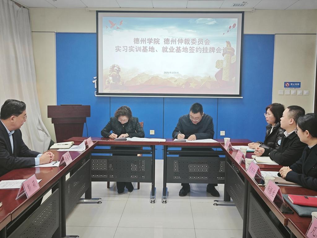 法学与公共管理学院负责人介绍了学院发展情况、教学科研、人才培养、学生实习就业等情况,希望此次合作可以拓宽学生实践教学和就业路径,双方协同培养法律实务人才。德州仲裁委员会负责同志介绍了单位有关情况,表示将积极为学生提供实习指导与就业指导,切实提高学生的专业实务能力和职业素养,也希望后续建立长期稳定合作关系。