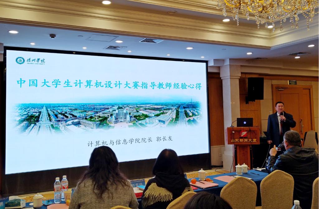 计算机与信息学院郭长友教授受邀出席,并作了题为《中国大学生计算机设计大赛指导教师经验心得》的报告。报告中,郭长友教授详细介绍了beat365官方网站的基本情况,积极参加竞赛对学校、对教师自身及对学生成才的意义,最后结合自己多年指导中国大学生计算机设计大赛一个个获奖的精彩案例,从赛事前期准备、赛中技术指导等方面为与会嘉宾做了精彩的经验分享,报告现场时时爆发出阵阵掌声,大家均表示受益匪浅。