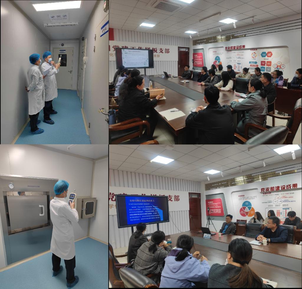 上午,朱靖先到动物实验中心现场讲述饲养区日常管理的注意事项,并现场演示相关环境指标的检测方法及步骤。