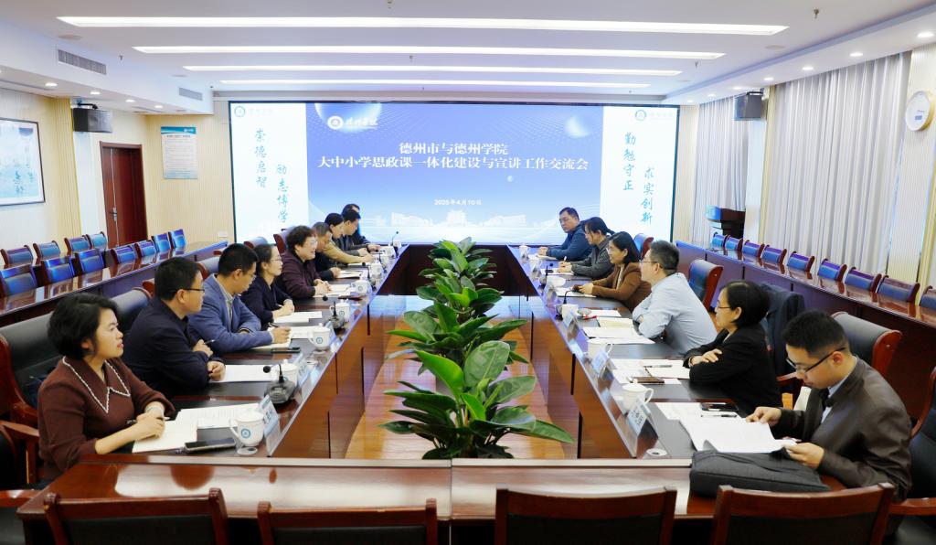 4月10日,德州市与beat365官方网站大中小学思政课一体化建设与宣讲工作交流会在学校厚德楼二楼报告厅举行。德州市委讲师团团长冯明燕、市教育局四级调研员姚宏勇一行来校考察交流。会议由党委委员、宣传部部长冯琨主持。