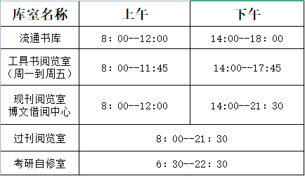 注:周二下午图书馆例会,推迟一个半小时开馆。