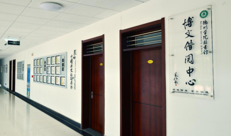 博文借阅中心成立于2019年,位于东校区博文楼一楼,藏书1万6余册,期刊108种,面积约300平,内设读书文化厅、黑陶文化厅、大运河文化厅以及德州地域音乐文化厅,厅内共设置了128个阅览座位,其中包括8个沙发座位,16个休闲座位,厅外设置两台电子借阅设备,是集图书借阅、自修、互动交流为一体的学习中心、交流中心和文化中心。
