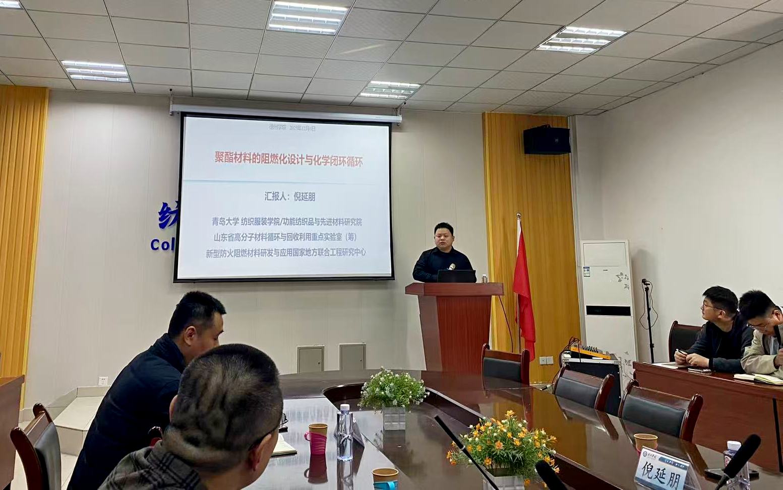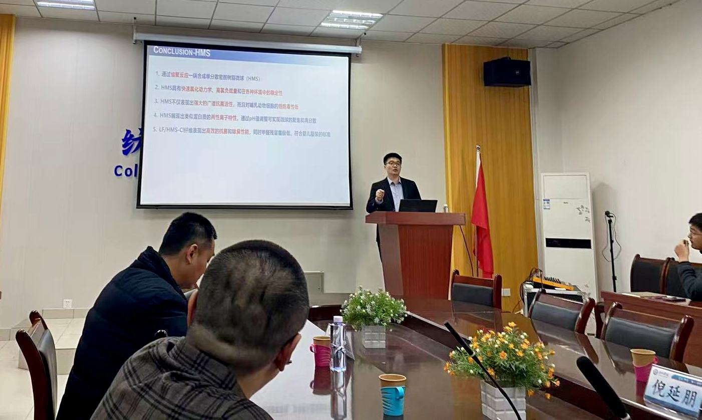 徐英俊教授在报告中系统阐述了功能性莱赛尔纤维的研究现状、关键科学问题及未来发展趋势,并结合自身科研实践,分享了团队在相关领域取得的创新成果。倪延朋教授以涤纶纤维的阻燃应用为切入点,系统剖析了当前研究中的关键问题,并围绕其团队在磷氮协同阻燃、生物基阻燃体系构建及绿色回收技术等方面的创新成果。