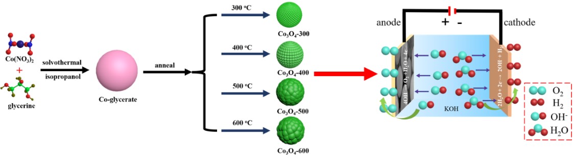 甘油酸衍生Co3O4纳米微球作为高效催化剂用于析氧反应