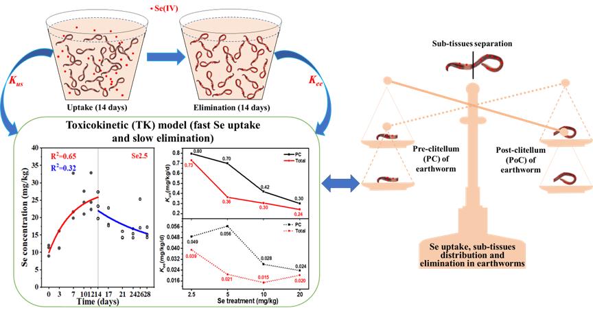 近日,生物物理研究院生物信息多学科交叉团队在《Science of The Total Environment》(IF:10.753,TOP期刊)发表研究论文“Uptake, distribution, and elimination of selenite in earthworm Eisenia fetida at sublethal concentrations based on toxicokinetic model”,该工作利用毒代动力学模型(TK model),围绕环境污染物硒(Se)在土壤动物—蚯蚓体中的吸收、分布和清除的动态过程开展了研究。