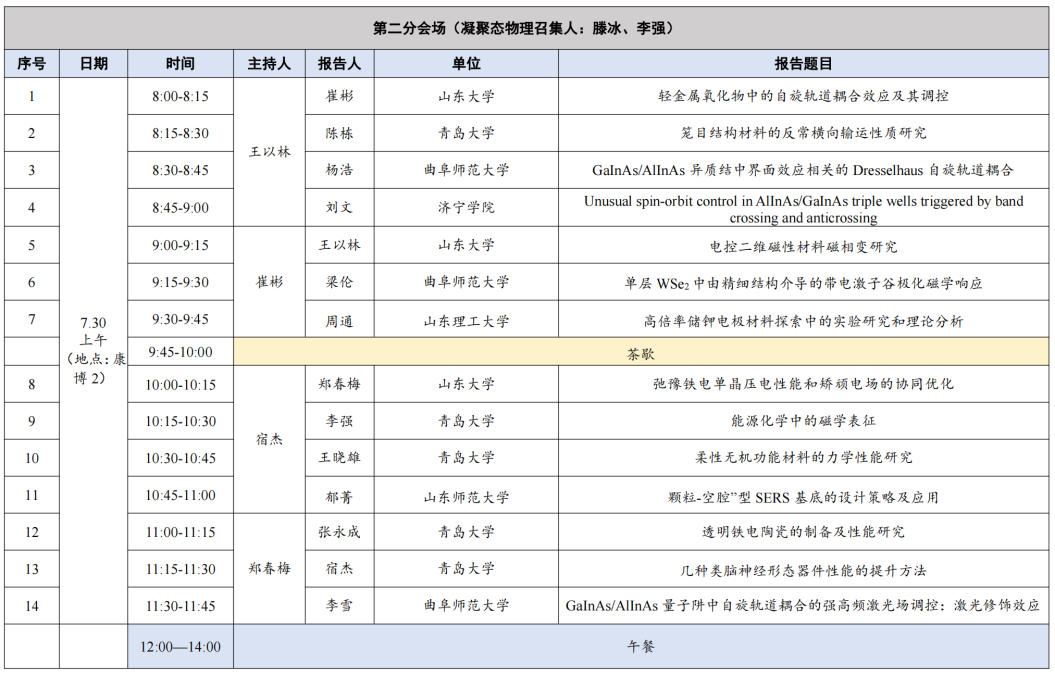 第二分会场(凝聚态物理) 康博2(7月30日8:00-12:00)