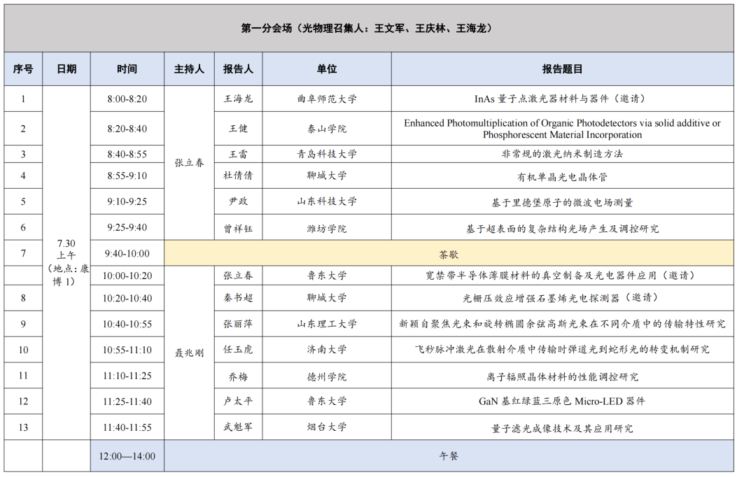 第一分会场(光物理) 康博1(7月30日8:00-12:00)