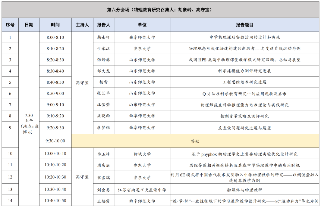 第六分会场(物理教育) 康博6(7月30日8:00-12:00)
