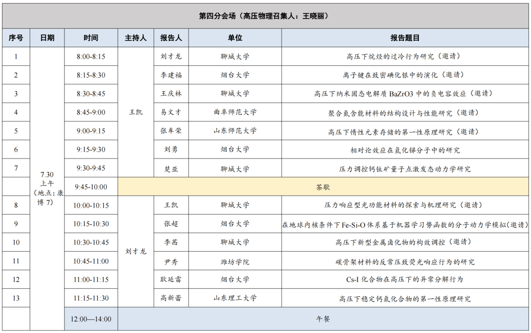第四分会场(高压物理) 康博7(7月30日8:00-12:00)