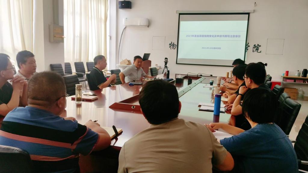 交流结束,物电学院负责人对2024年度国家自然科学基金的申报工作进行动员部署。要求教师们高度重视基金申报工作,积极参与,培养和发展科研能力;动员教师们依据自身研究基础和专家指导建议,围绕学校发展需求,制定和执行适合自身的自然科学基金项目申报方案和规划,实现个人和学院整体的融合发展。