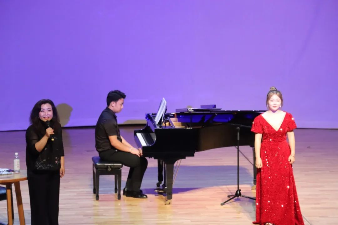 第二部分现场指导学生演唱。王教授分别指导音乐学院学生演唱了三首歌剧选段《三月桃花心中开》《运河谣》和《秦生啊,你还好吗?》,在元音转换、换声点过度与乐句重音突出问题方面进行了详细指导。