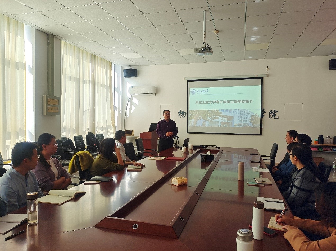 11月4日上午,在启智楼0365会议室,物理与电子信息学院邀请了河北工业大学电子信息工程学院的赵全明教授和赵兴华副教授来校作报告,交流电磁场应用与物联网智慧平台建设。报告会由物电学院主要负责人主持,物联网工程专业与电子信息工程专业全体教师参加。