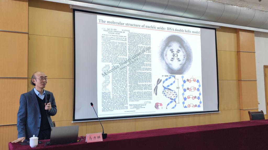 会上,马力耕教授围绕生物基因作以《植物SKIP介导的RNA加工机制和功能》为题报告,详细介绍了RNA的加工机制以及生物的遗传特性对生物基因造成的影响,并用图片等生动的向师生展示了SKIP介导的功能。随后,马教授与参会师生分享了自身参与实验的经验,同时建议大家要在实验中保持严谨认真的态度,同学们纷纷表示受益匪浅。最后,赵书记表示希望在座的同学们能够积极汲取马教授报告中严谨、科学的治学思想和科研方法,扎实打好专业基础,立志做行业内的佼佼者。