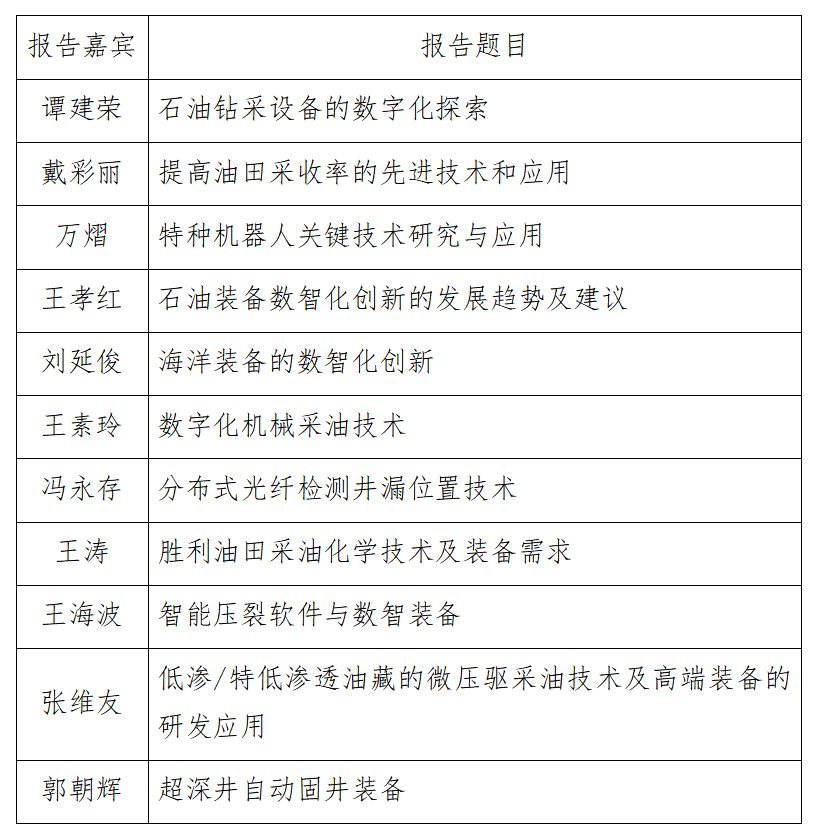 本次会议聚焦石油装备行业数智化转型与技术创新,旨在搭建产学研协同创新平台,推动行业技术升级与成果转化,助力能源产业智能化发展。聚焦油气行业数字化转型与智能化突破,围绕石油装备数智化技术研发、智能油田建设、工业互联网平台应用、绿色低碳装备升级等领域开展学术研讨,搭建“产学研用”协同创新平台,推动石油装备产业向高端化、智能化、绿色化迈进。会议将安排特邀报告、大会报告10余个,预计参会人数200-300人。国家能源局、中国石油、中国石化、中国海油、国家管网及高校、科研院所、企业的200余名专家学者、技术骨干和行业代表参会,诚邀全校相关学科、专业师生参加盛会。部分报告题目如下: