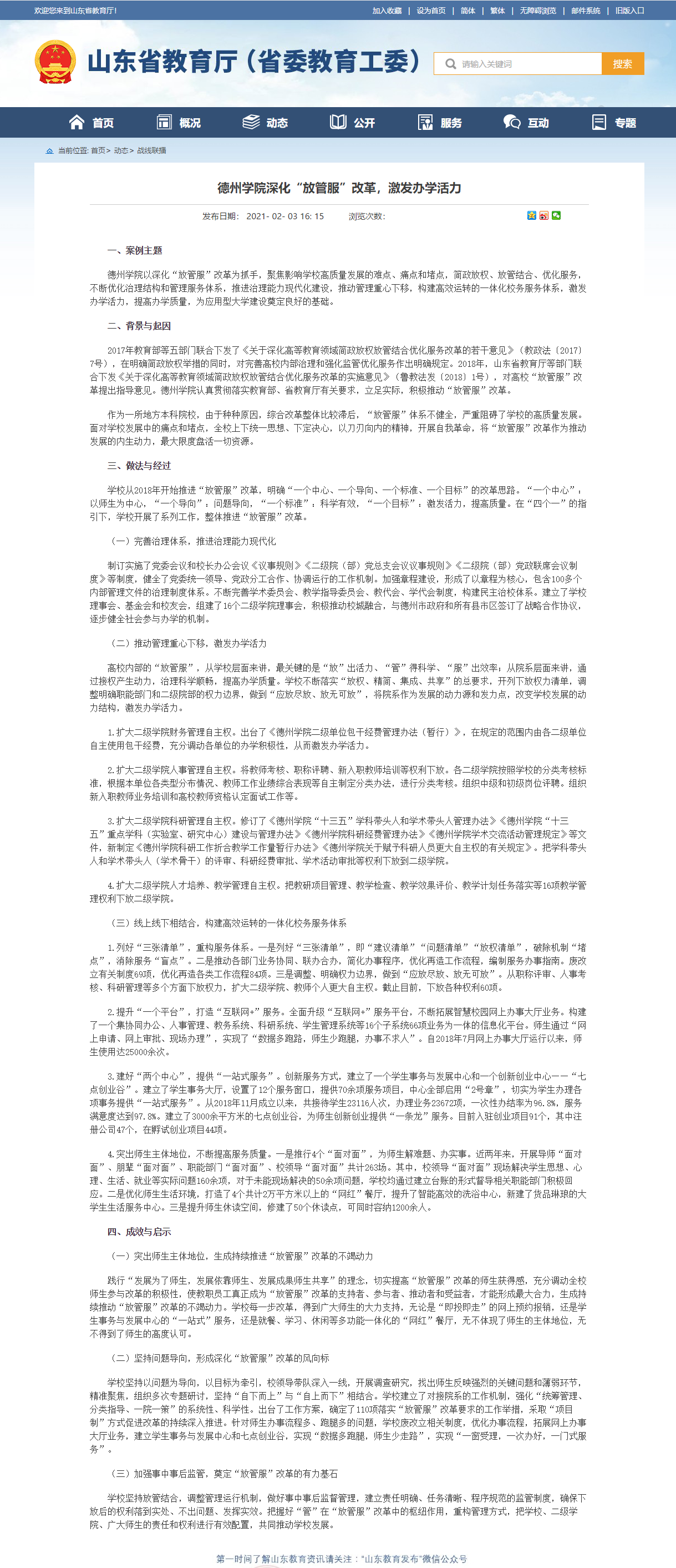 beat365官方网站以深化“放管服”改革为抓手,聚焦影响学校高质量发展的难点、痛点和堵点,简政放权、放管结合、优化服务,不断优化治理结构和管理服务体系,推进治理能力现代化建设,推动管理重心下移,构建高效运转的一体化校务服务体系,激发办学活力,提高办学质量,为应用型大学建设奠定良好的基础。