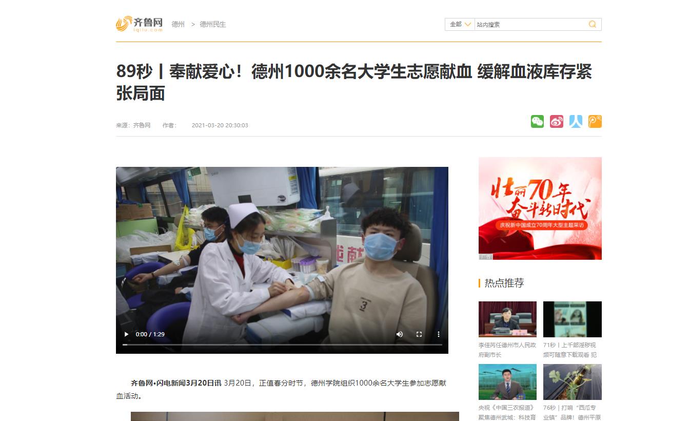 【大众日报、山东广播电视台、山东教育发布】beat365官方网站大学生无偿献血爱心活动