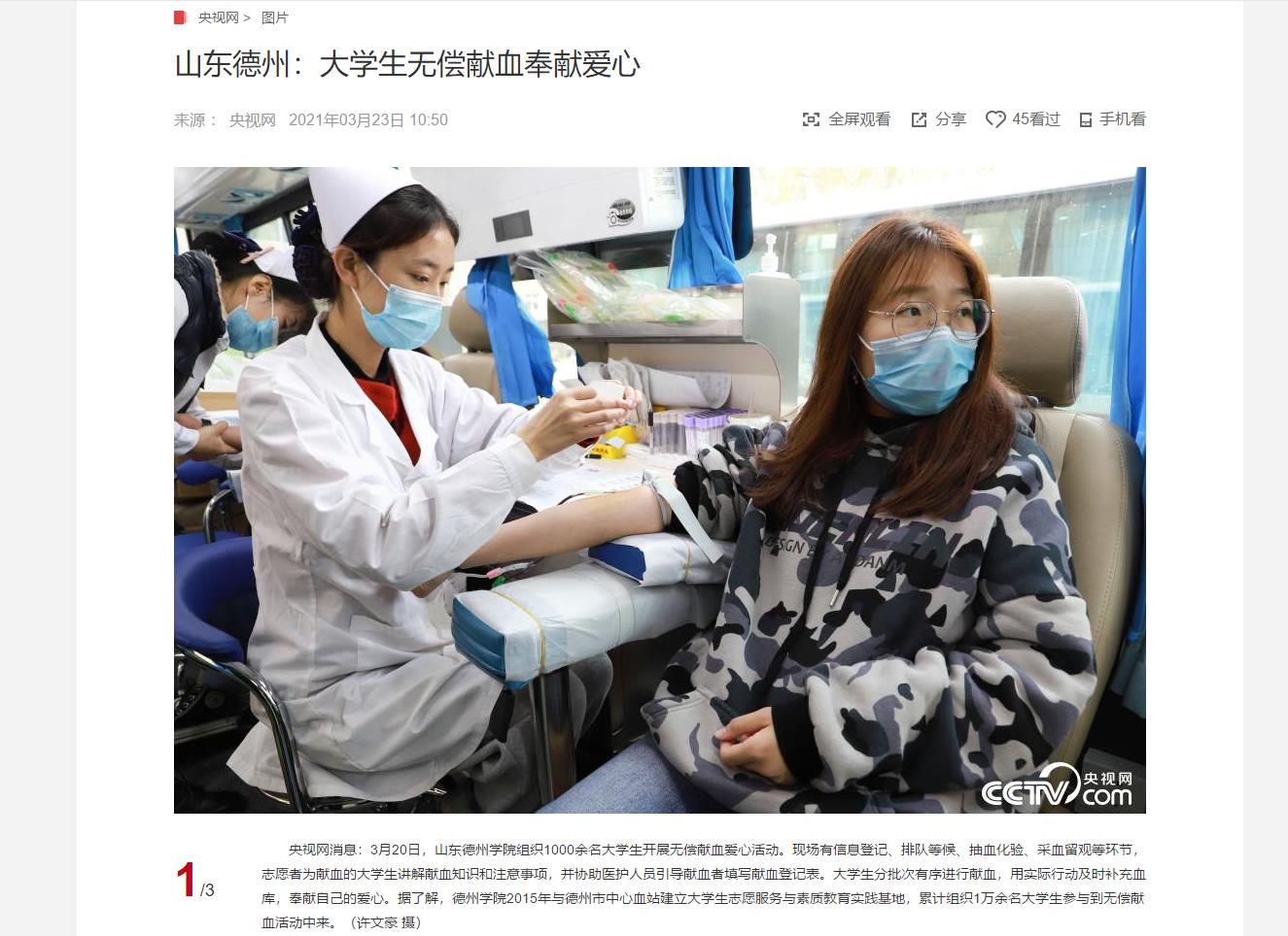 【央视CCTV、学习强国】beat365官方网站大学生志愿献血奉献爱心
