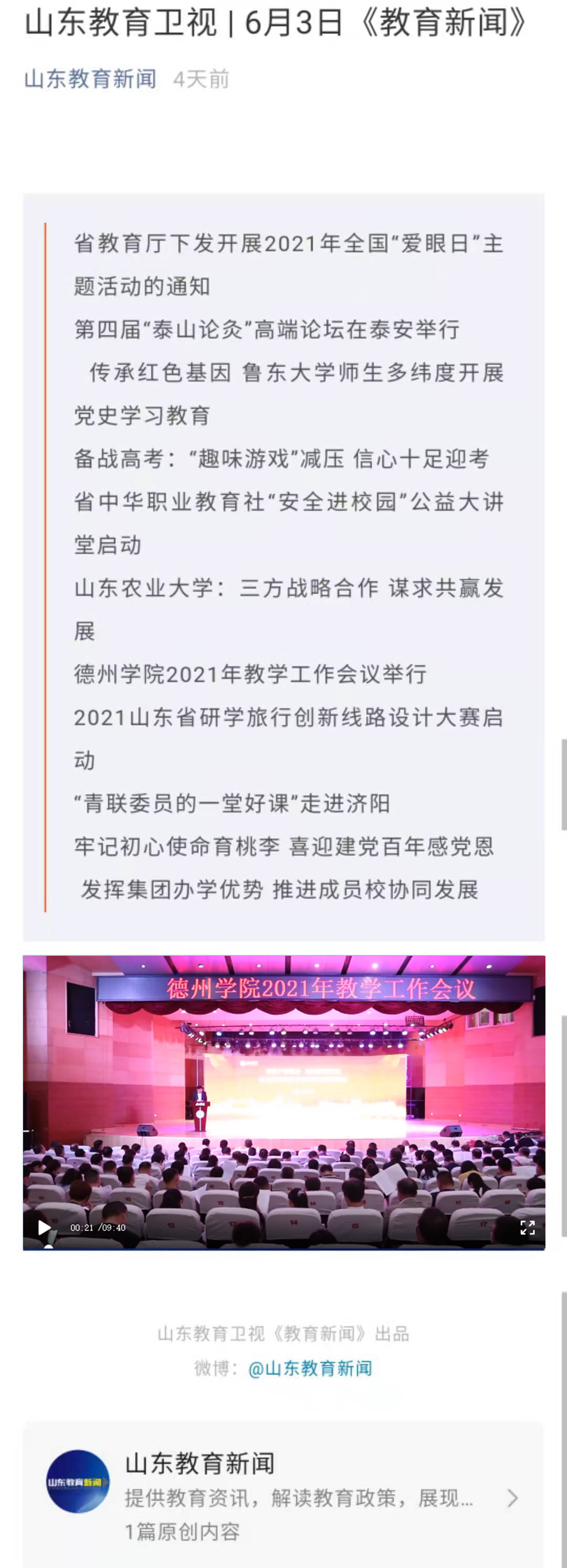 【山东教育卫视 | 6月3日《教育新闻》】beat365官方网站2021年教学工作会议举行