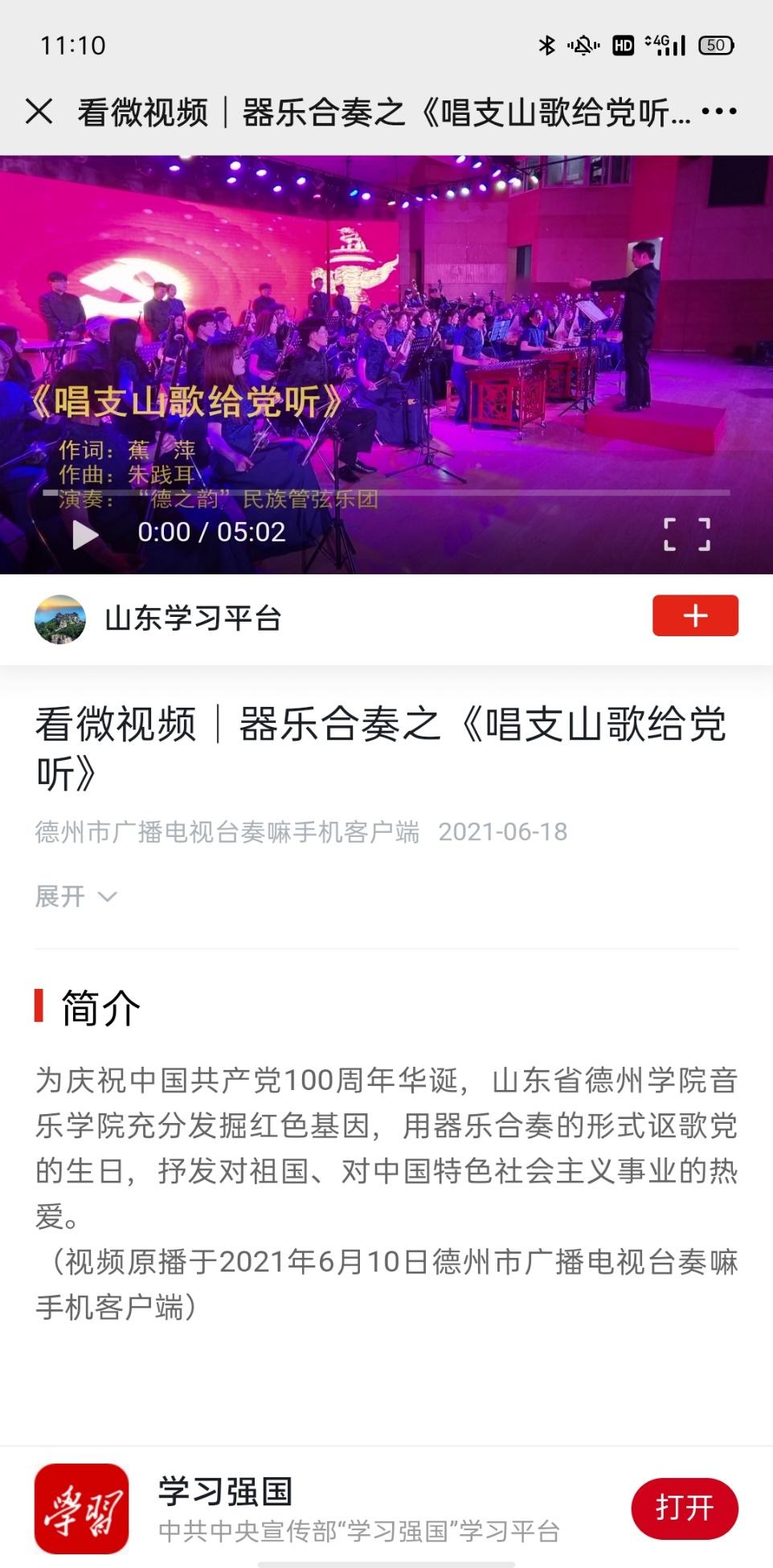【学习强国】看微视频|器乐合奏之《唱支山歌给党听》
