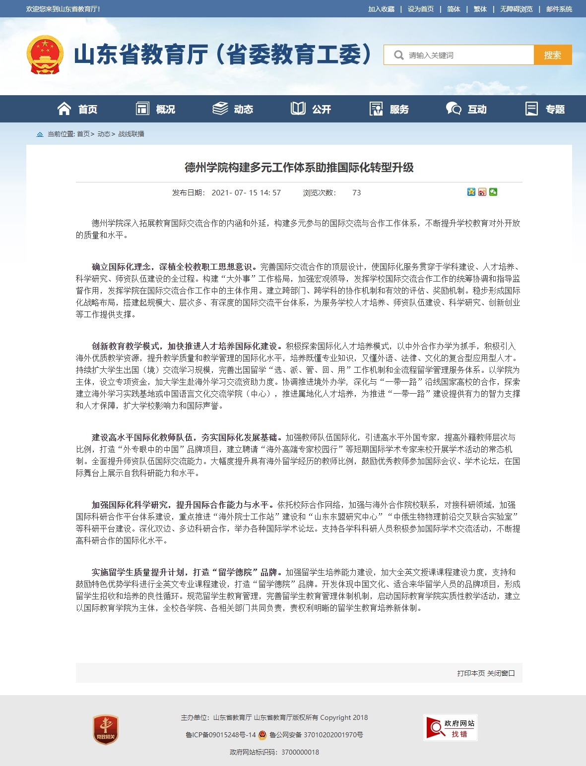 【山东省教育厅】beat365官方网站构建多元工作体系助推国际化转型升级