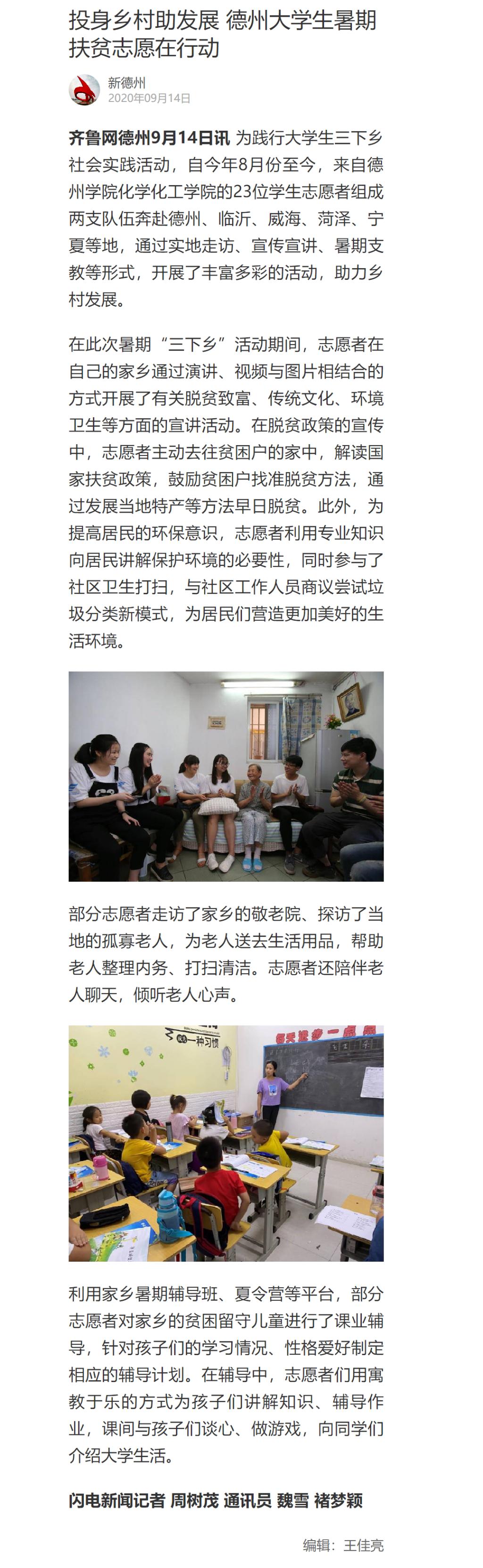 【齐鲁网】投身乡村助发展 德州大学生暑期扶贫志愿在行动