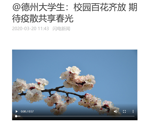 3月18日,beat365官方网站校园内春意盎然,二月蓝、杏花、梨花、桃花、迎春花竞相开放,绿意满园,扑面而来,把校园装点得诗情画意。闪电新闻对此进行了报道。