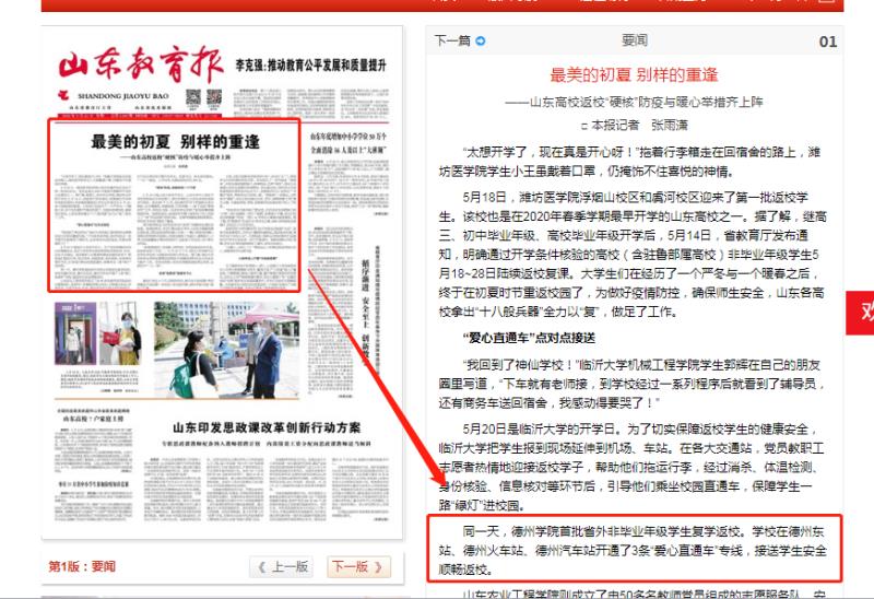 山东教育报:德州“爱心直通车”点对点接送助力高校学生返校