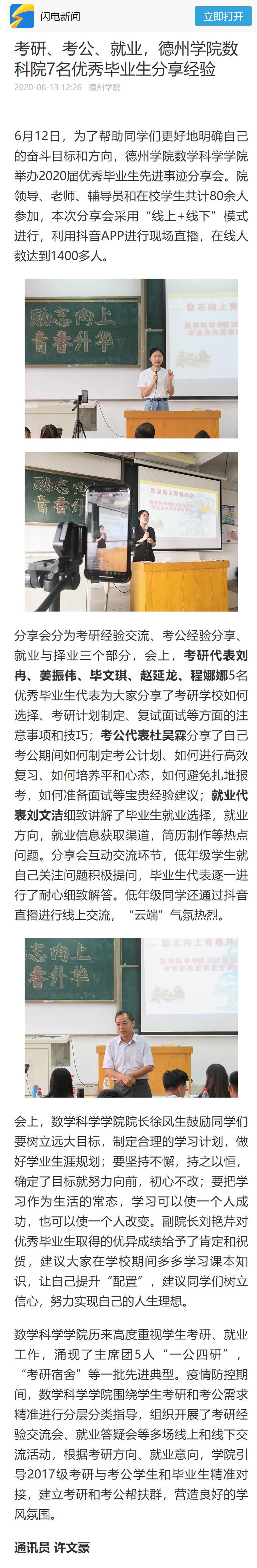 【齐鲁网、闪电新闻】考研、考公、就业,beat365官方网站数科院7名优秀毕业生分享经验